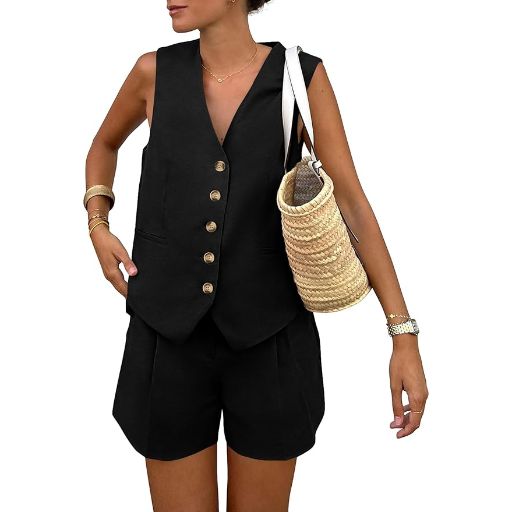PRETTYGARDEN delivers a chic warm-weather look with this two-piece set, pairing a button-down V-neck vest with high-waisted shorts. Designed for comfort and versatility, the outfit uses a breathable blend of polyester, viscose, and elastane to create an elegant yet relaxed silhouette—ideal for casual brunches, stylish errands, or vacation outings.