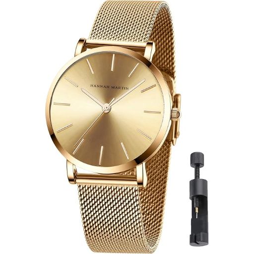 HANNAH MARTIN Women’s Waterproof Analog Quartz Watch – Gold Stainless Steel Band
